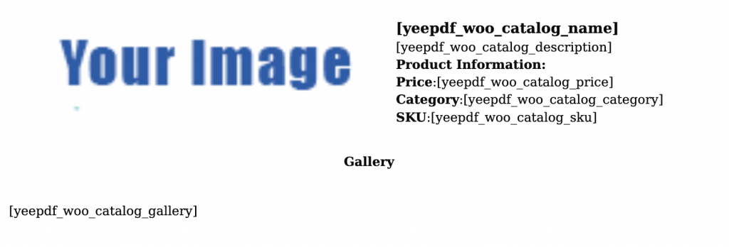 [yeepdf_woo_catalog_image] | Main Image: The standard WooCommerce product image HTML tag. |